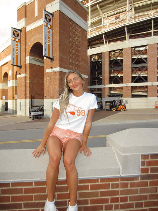Sold outPATCHWORK GAMEDAY BABY TEE