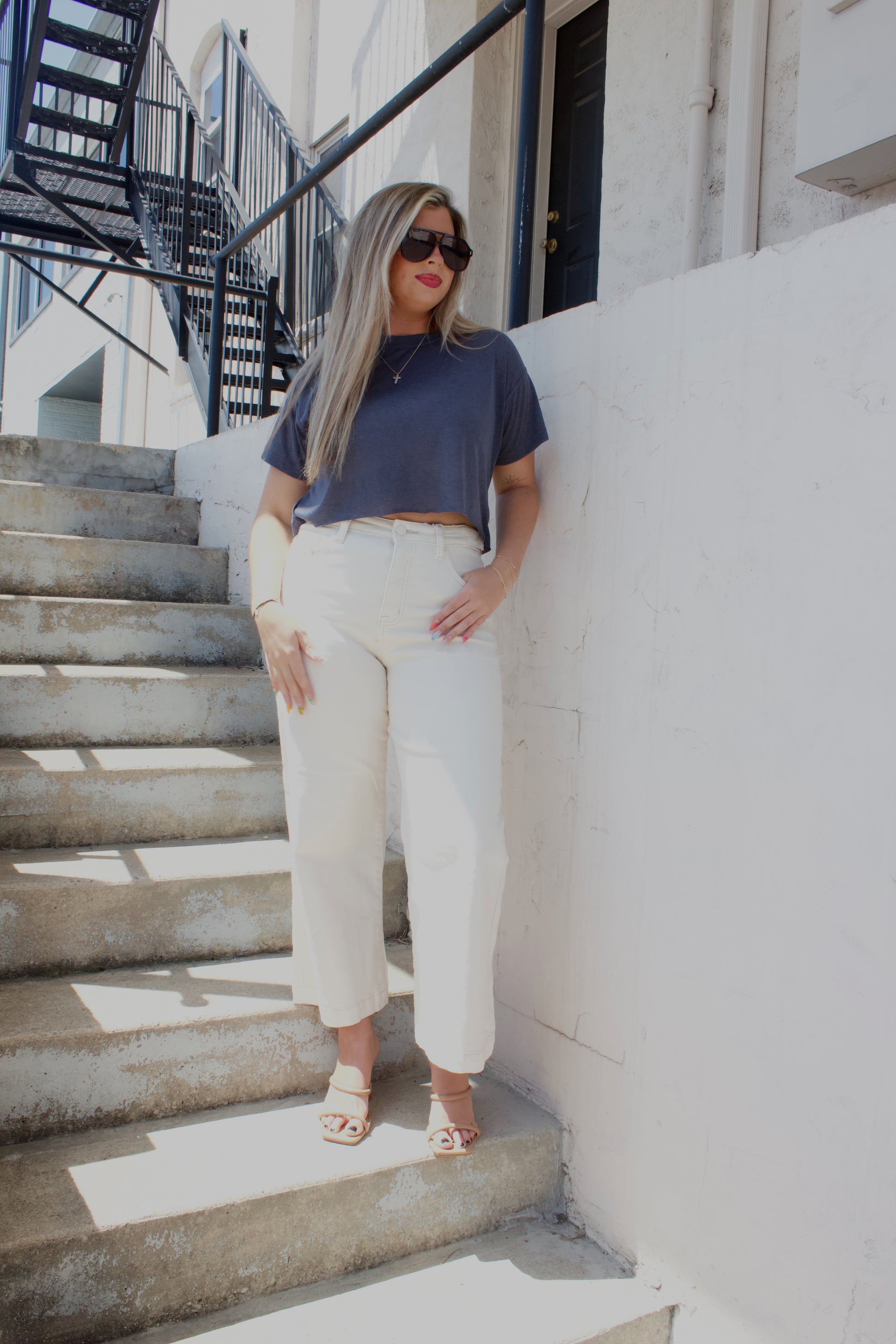 Blueish grey and super lightweight top perfect for a hot summer day or vacation!