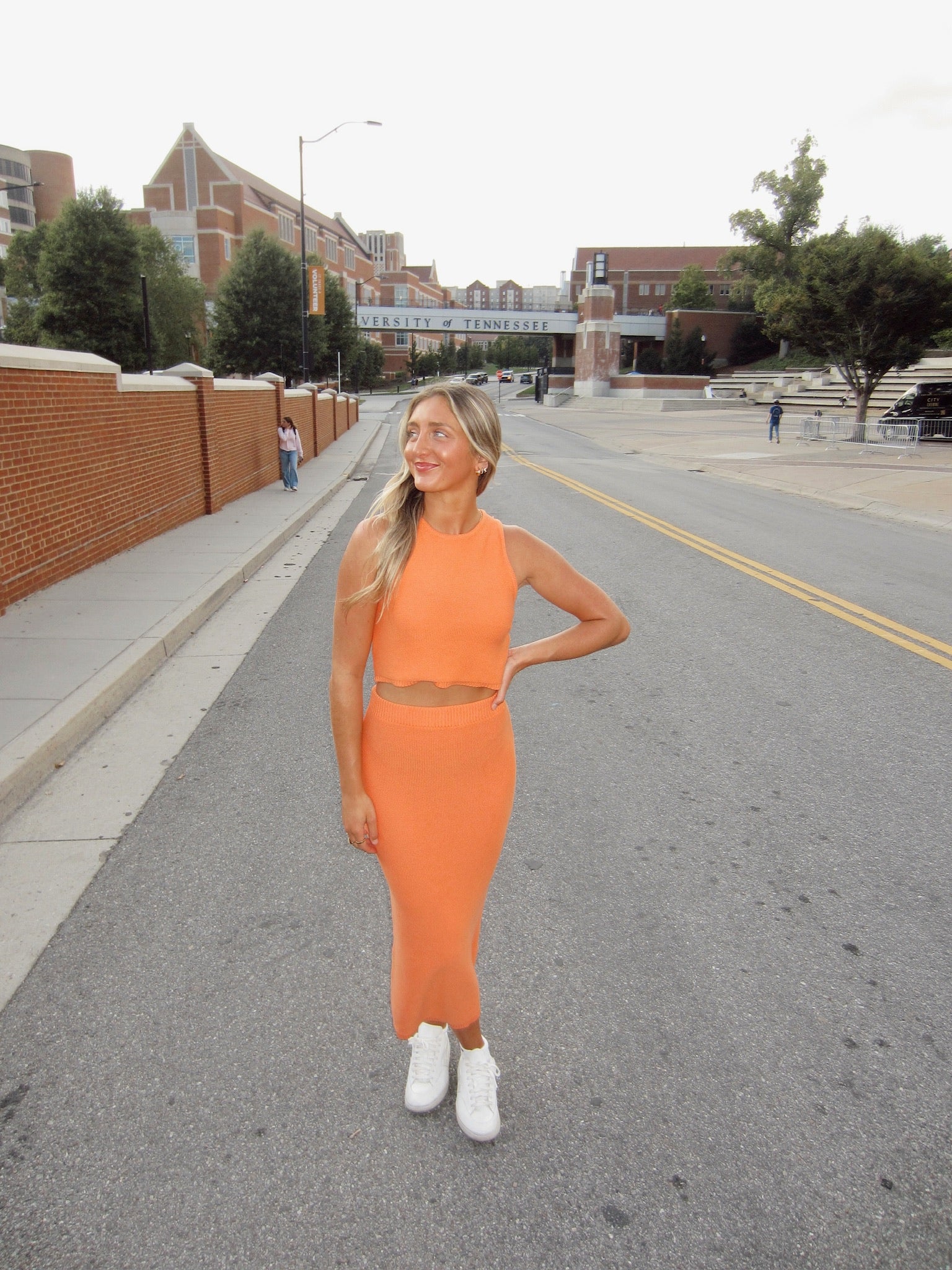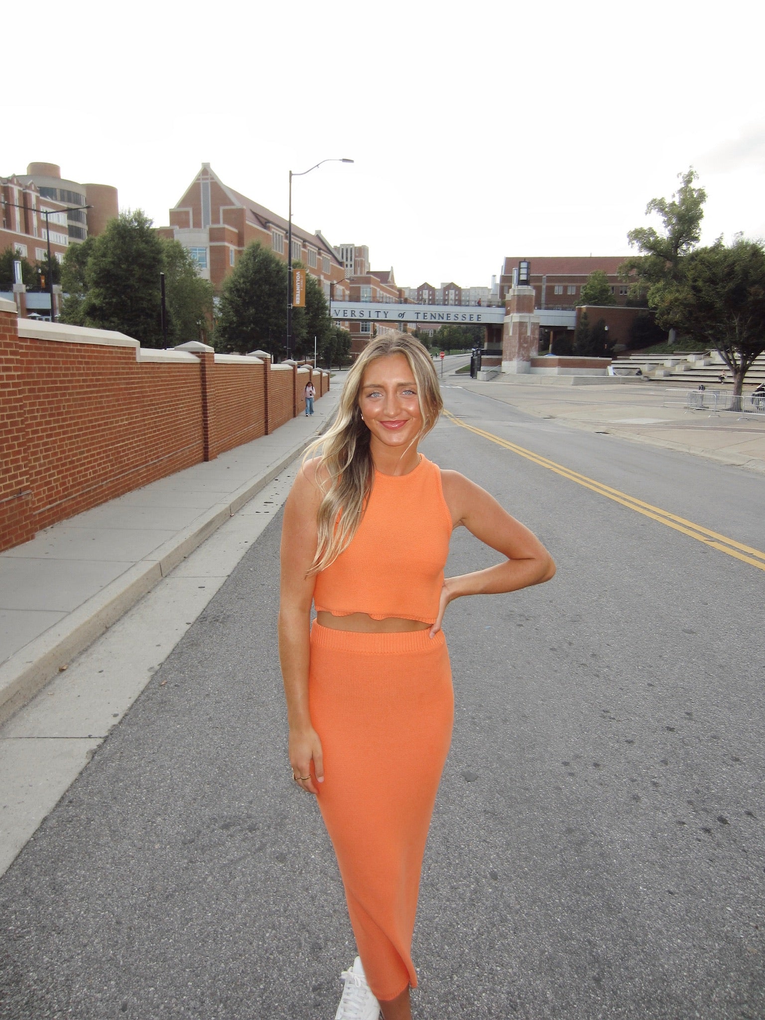 This knit set is perfect for everything fall! We love the midi skirt and top combo! These pieces are sold together.