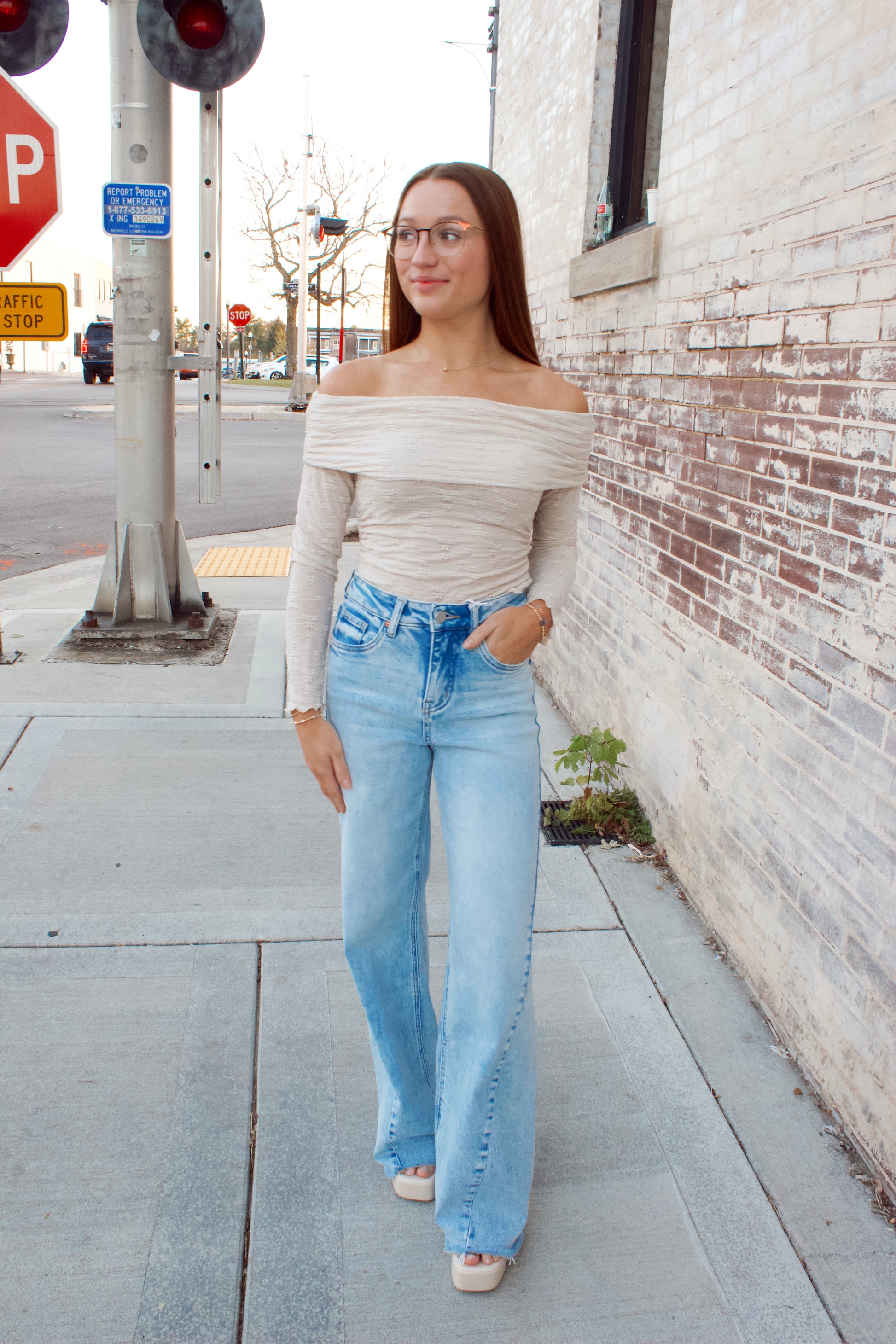 This chic off the shoulder top is going to be your next favorite top for going out with the girls when it gets chilly.
